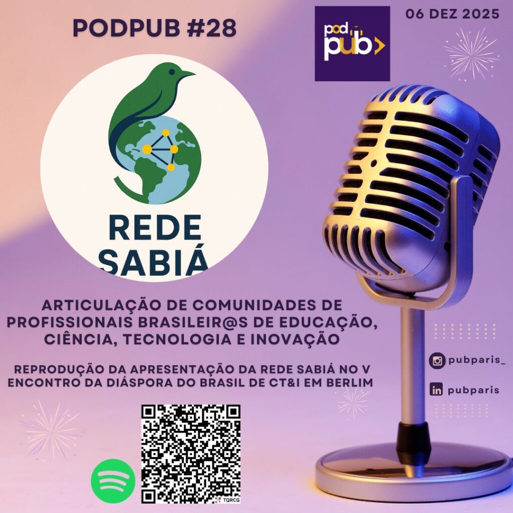 Em 6 de dezembro de 2025 entrou no ar o novo episódio do podcast PodPUB – com foco na Rede Sabiá – a rede de articulação de comunidades de profissionais brasileir@a de Educação, Ciência, Tecnologia e Inovação no exterior.